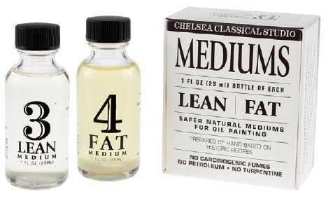 Das Chelsea Classical Studio Fat Medium™ [CCS Fettes Malmittel] ist eine Mischung aus unserem extraklaren, kaltgepressten Leinsamenöl (Linseed Oil Extra Pale Cold-Pressed) und unserem Lavendel-Dammarfirnis (Lavender Damar Varnish). Es ist ein relativ glänzendes Malmittel, das schnell trocknet, gilbungsbeständig ist und für die späteren Farbschichten empfohlen wird.